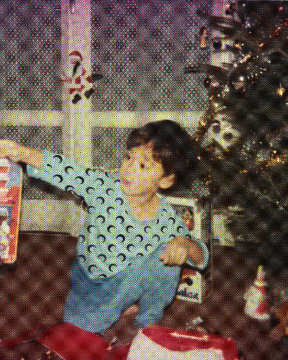 Cette année, MARINE SERRE redonne vie aux photographies vintage de la famille MS datant des années 1980 et 1990, redécouvertes et méticuleusement réenchantées. Ces scènes d'archives des fêtes de fin d'année ont été soigneusement réinterprétées avec le monogramme Moon emblématique de la marque.